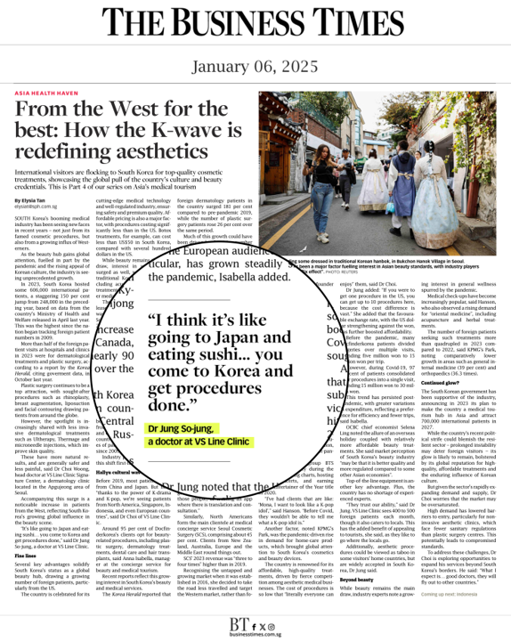 As highlighted in Singapore's The Business Times, Korea is rapidly becoming a global hotspot for aesthetic procedures, much like how Japan is known for sushi. [VS Line Signature Center] has been proudly featured as a top destination for international visitors seeking advanced cosmetic treatments, thanks to our expertise, innovation, and world-class care.